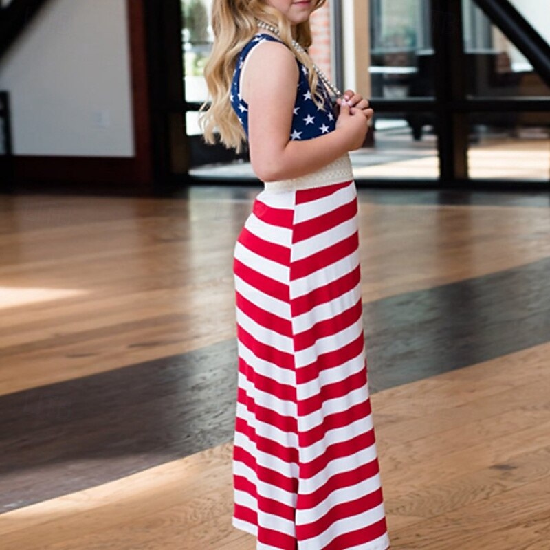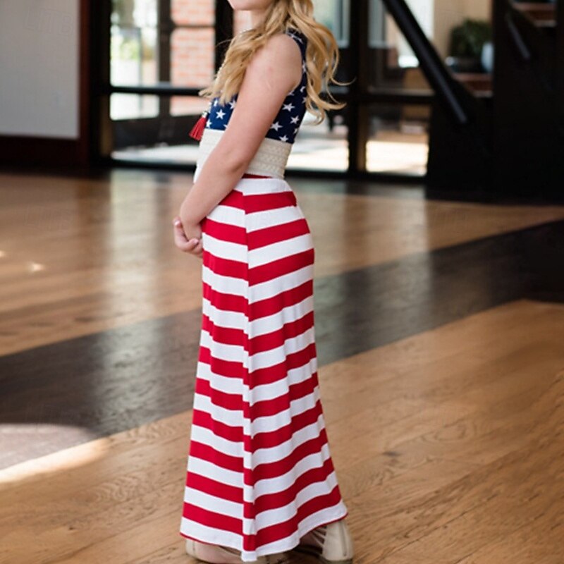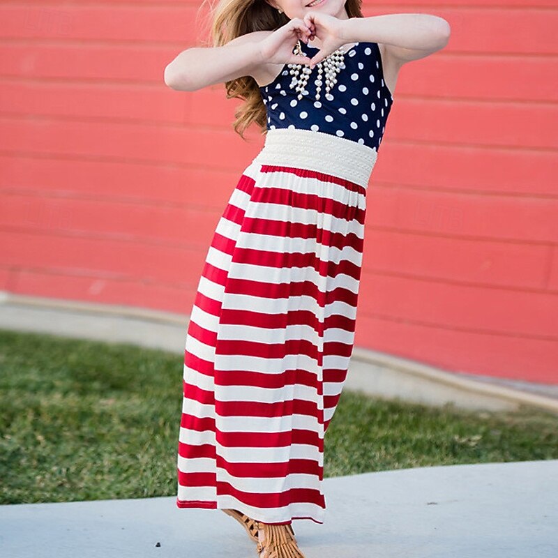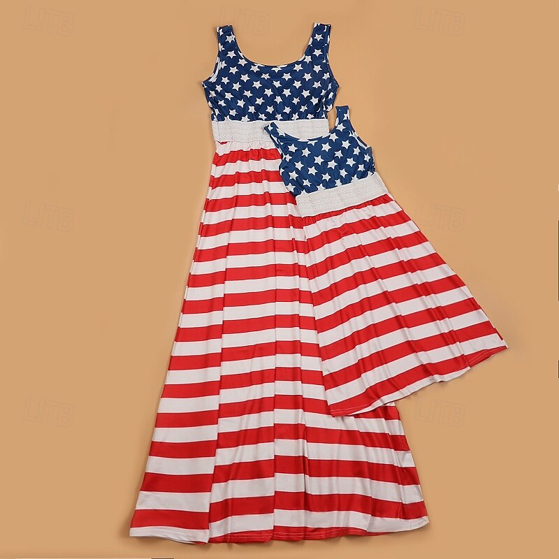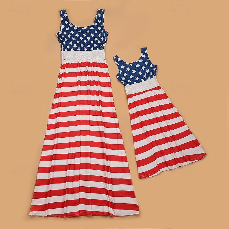 More information about Mommy and Me Dresses Striped Street Patchwork Red Blue Sleeveless Maxi Tank Dress Adorable Matching Outfits