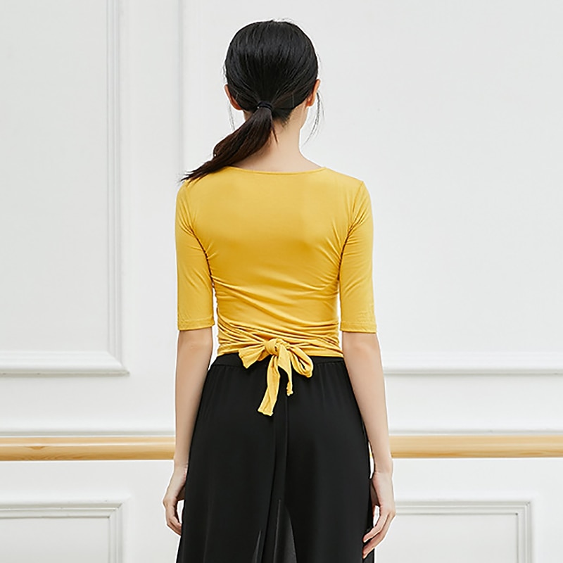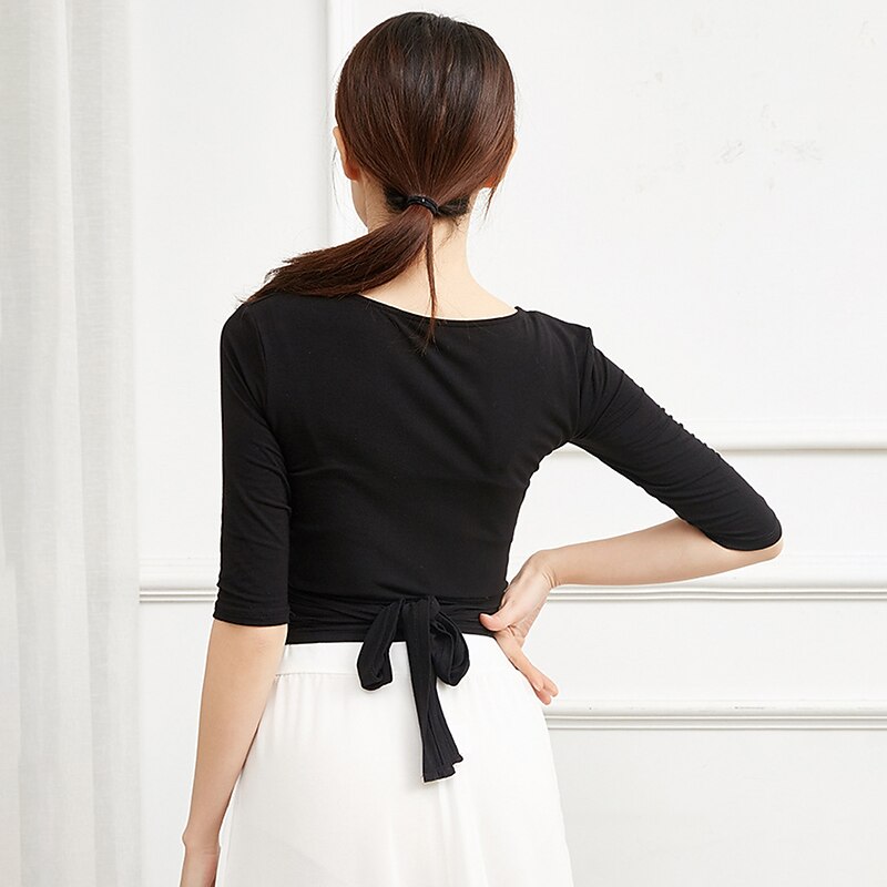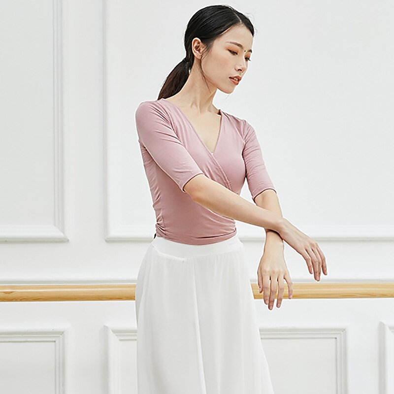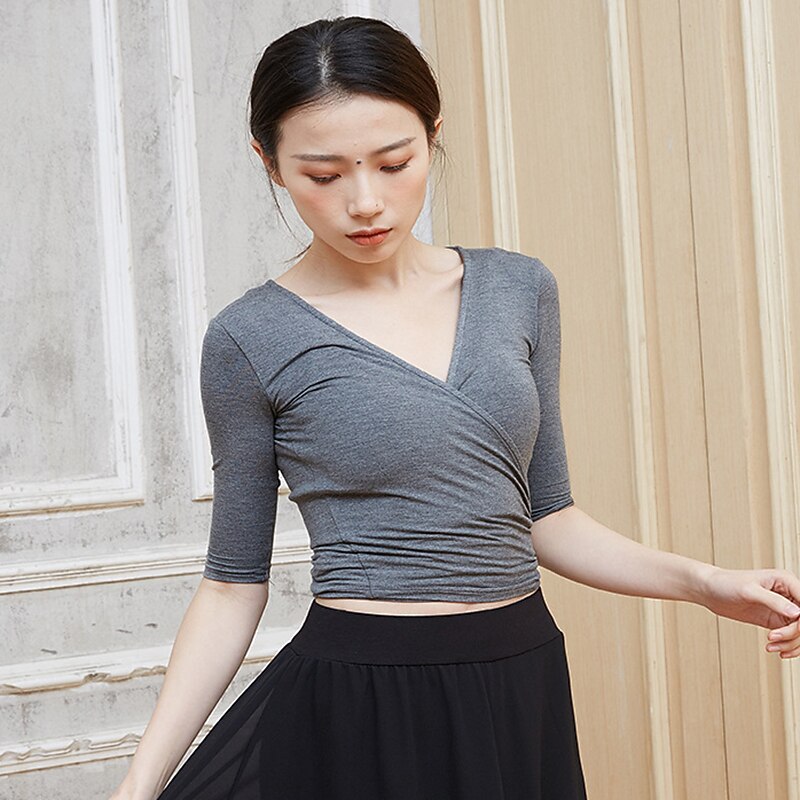 Breathable Ballet Top Ruching Bandage Solid Women's Training Performance Half Sleeve Modal 7