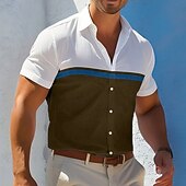 More information about Men's Geometic Dress Shirt Casual Shirt Button Up Shirt Short Sleeve Business Casual Formal Vacation Summer Spring Turndown Button Up Blue Orange Green