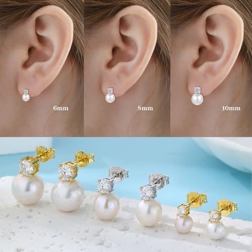 • 【MULTIPLE SIZES FOR YOUR CHOICE】 3mm/4mm/5mm moissanite(0.1ct/0.3ct/0.5ct) with 6mm/8mm/10mm round freshwater pearl, pierced earring design with comfort disc backs, perfect for impressive gift-giving.