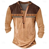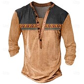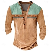 More information about Men's Graphic Ethnic T Shirt Henley Shirt Long Sleeve Designer Retro Vintage Ethnic Street Casual Daily Summer Spring Fall Light Green Blue Brown Dark Gray Henley Henley T-Shirt