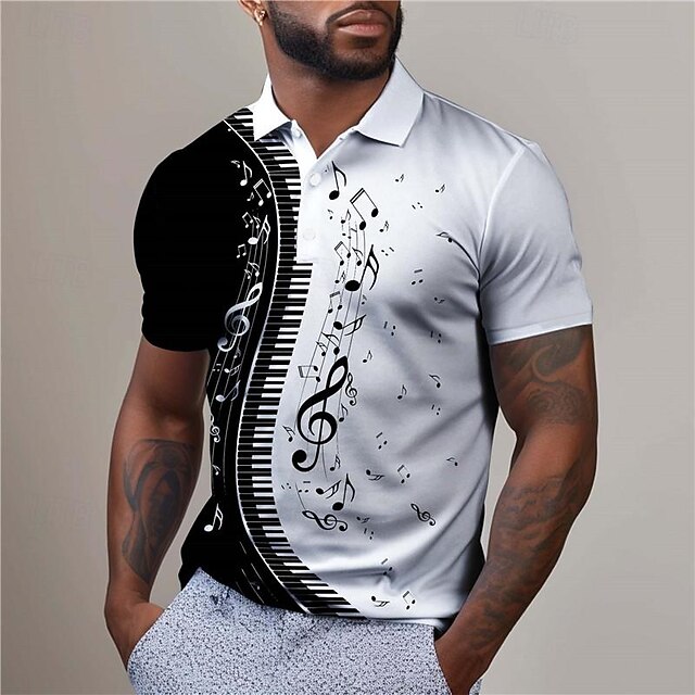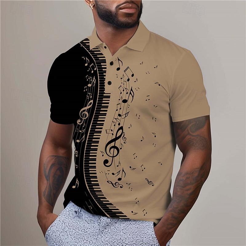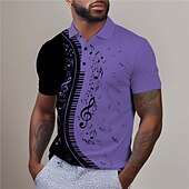 HOT ! Music Festival Men's Music Golf Shirt Short Sleeve Polo Shirts Collared Shirts Casual Vacation Wear Festival Wear Party Outfits Buttons 3D Print Summer White Blue Purple