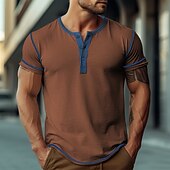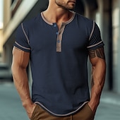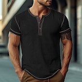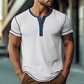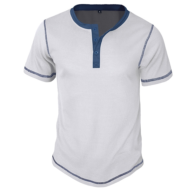 More information about Men's Waffle Tee Button T Shirt Waffle Henley Shirt Henley Shirt Short Sleeves Henley Summer Color Block Fashion Designer Basic Patchwork Vacation Street Going out Black White Navy Blue Top Tee for