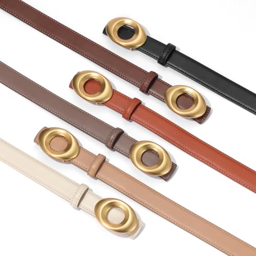 Women's Elegant Casual Genuine Leather Belt with Matte Oval Vintage Gold Buckle for Jeans Pants Dresses 4