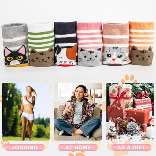 5-6 Pairs Women's Cute Cat Socks Gifts, Funny Novelty Animal Print Crew Cotton Socks Christmas Gifts for Women Girls 6