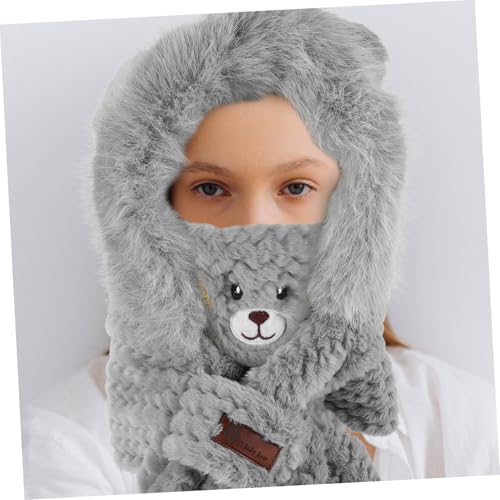 1set Winter Warm Suit Women's Bear Ear Hat Scarf Set Windproof Gloves Warm Mask Cycling Accessory Fashionable for Outdoor Activities Grey 1