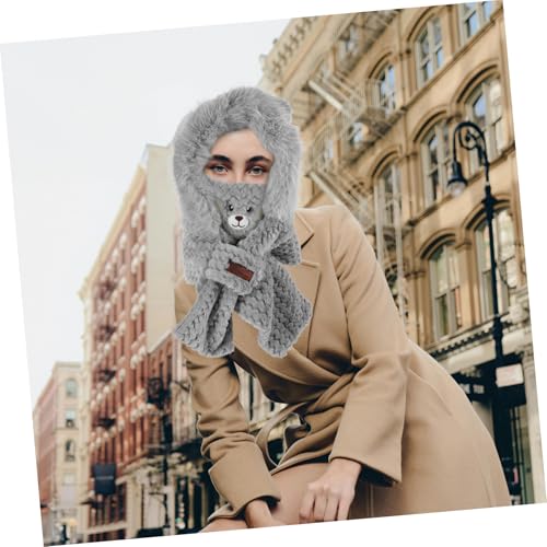 More information about 1set Winter Warm Suit Women's Bear Ear Hat Scarf Set Windproof Gloves Warm Mask Cycling Accessory Fashionable for Outdoor Activities Grey