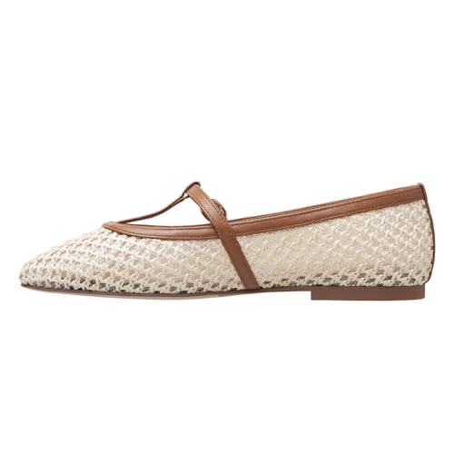 Linea Paolo - Monet - Womens Raffia and Nappa Leather T-Strap Flats 6