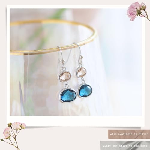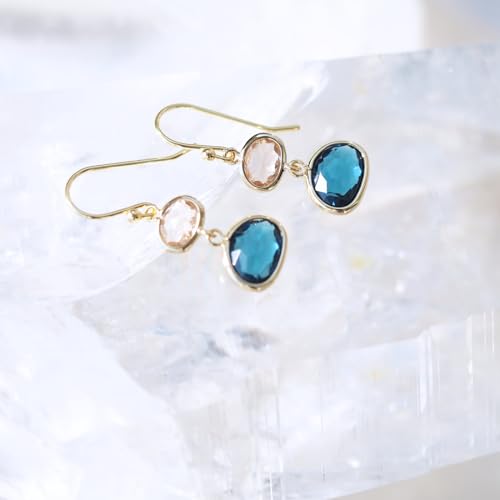 • Modern Elegance in Design: Each pair of our dangle earrings is meticulously handcrafted, showcasing stunning simulated navy blue sapphire and champagne topaz set against exquisite gold tones. The crystal accents add a touch of sparkle, ensuring these earrings provide a sophisticated and timeless appeal.