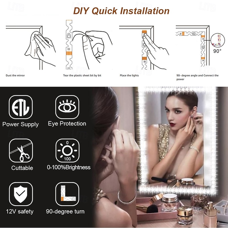 $19.49 - LED Vanity Mirror Light Kit 2-5 Meters Bendable without Cutting Vanity Table Vanity Mirror Dressing Room Dimmable Flexible Strip Kit with Dimmer and Power Supply Mirror not Included 2025. Shop for cheap Plug Strip Lights online? Buy at lightinthebox.com on sale today!
