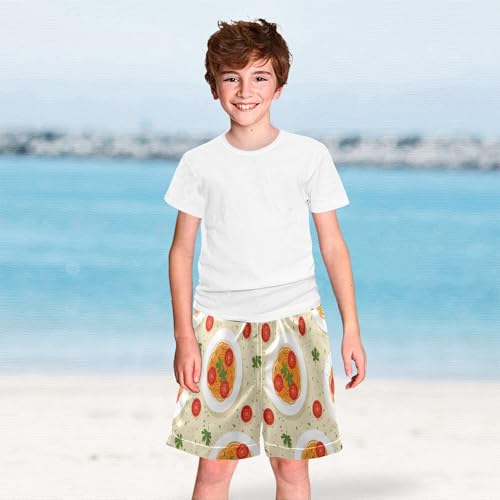 Boys Swim Trunk Quick Dry Spaghetti Tomato Plates Pattern Board Shorts Swimwear 6-14T 4