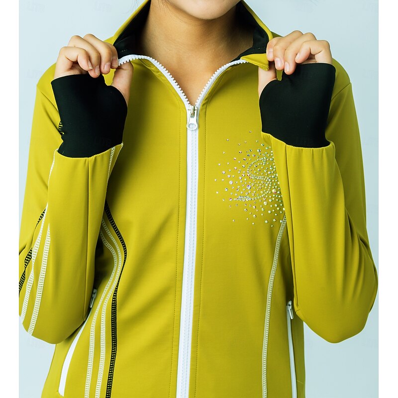 More information about Figure Skating Fleece Jacket Figure Skating Pants Figure Skating Jacket with Pants Women's Girls' Ice Skating Jacket Tights Outfits Black Yellow Patchwork Thumbhole Spandex Stretchy Training Practice
