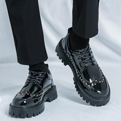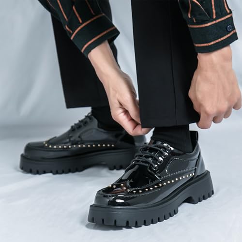 Men's Patent Leather Platform Wingtip Oxford Shoes with Rivets Round Toe Lace Up Lug Sole Brogue Dress Shoes Comfortable Business Work Causal Derby Oxfords 6