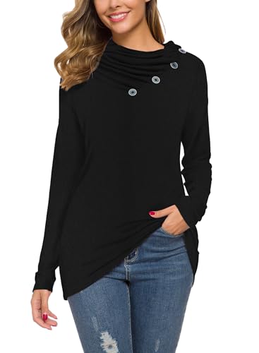 • Features: Long sleeve shirts for women, unique cowl neck with button decoration, cute long sleeve blouse tops, versatile office work shirts. The loose fit design helps conceal tummy issues, basic straight hemline tunic tops to wear with leggings