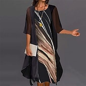 More information about Women's Fashion Streetwear Skirt Sets Half Sleeve Crew Neck Gradient Print Daily Wear Date Black Blue Beige Spring Regular Fit