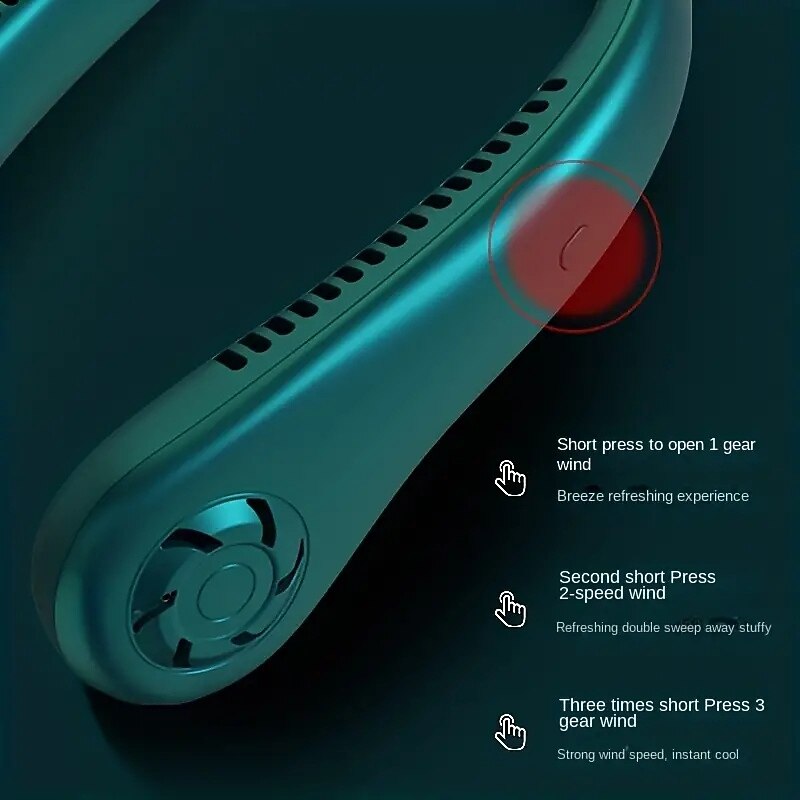 Hands-Free Hanging Neck Fan – Leafless USB Powered Portable Fan with 1200mAh Battery, Bladeless Cooling for Travel 9