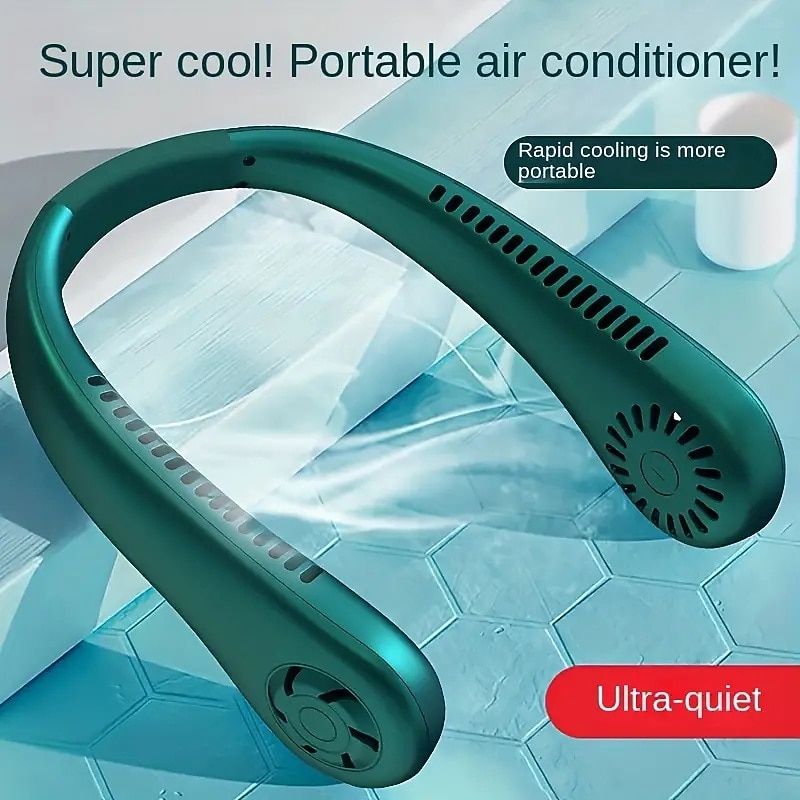 HOT ! Hands-Free Hanging Neck Fan – Leafless USB Powered Portable Fan with 1200mAh Battery, Bladeless Cooling for Travel