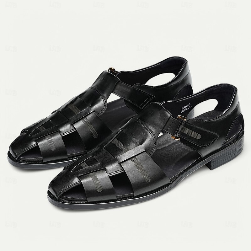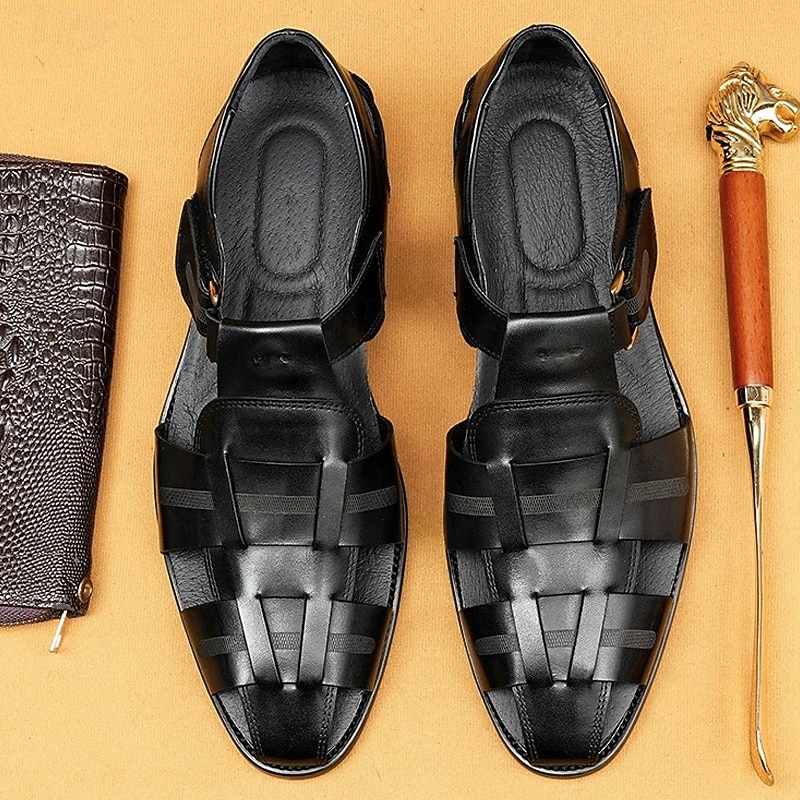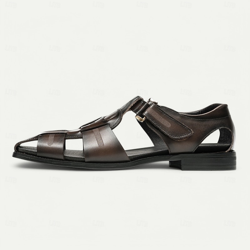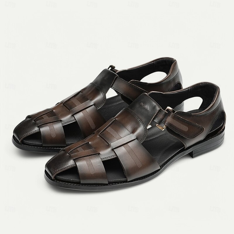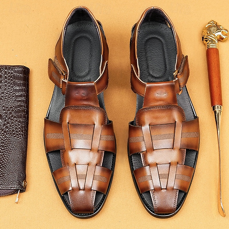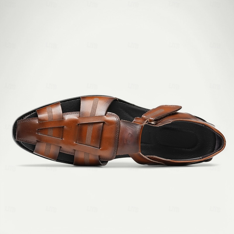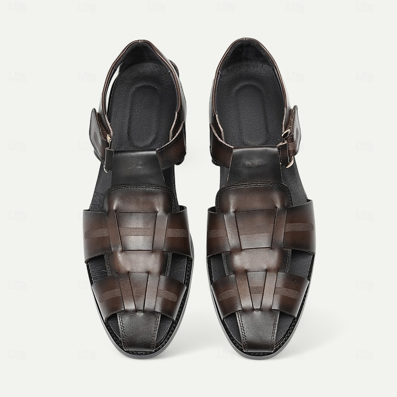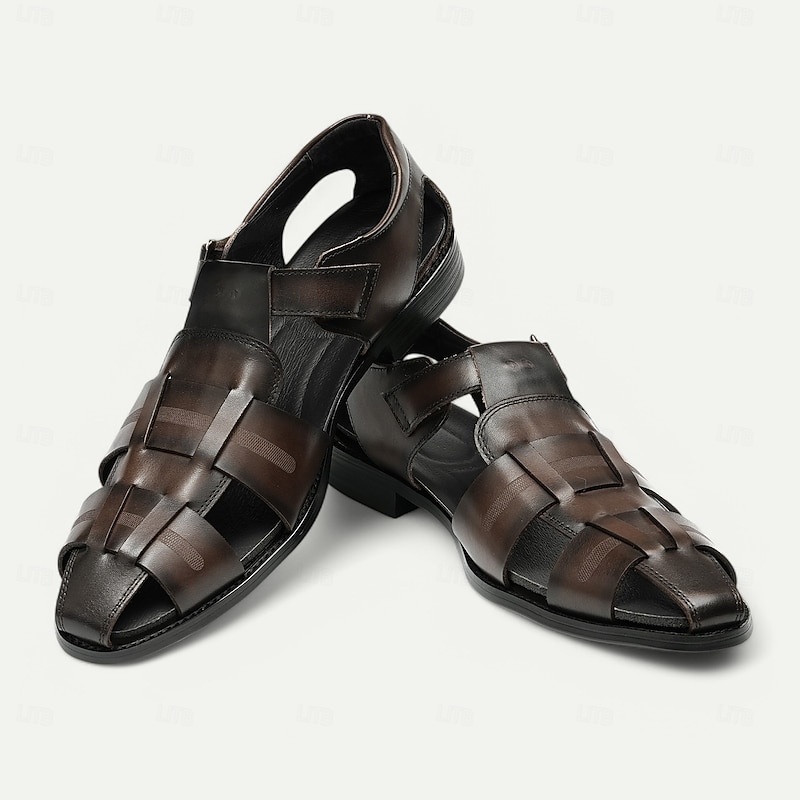Luxury Men's Brown Leather Fisherman Sandals - Elegant Dress Footwear with Woven Straps 23