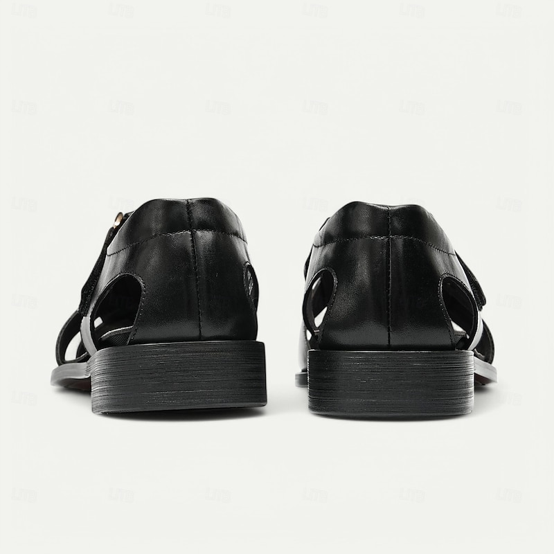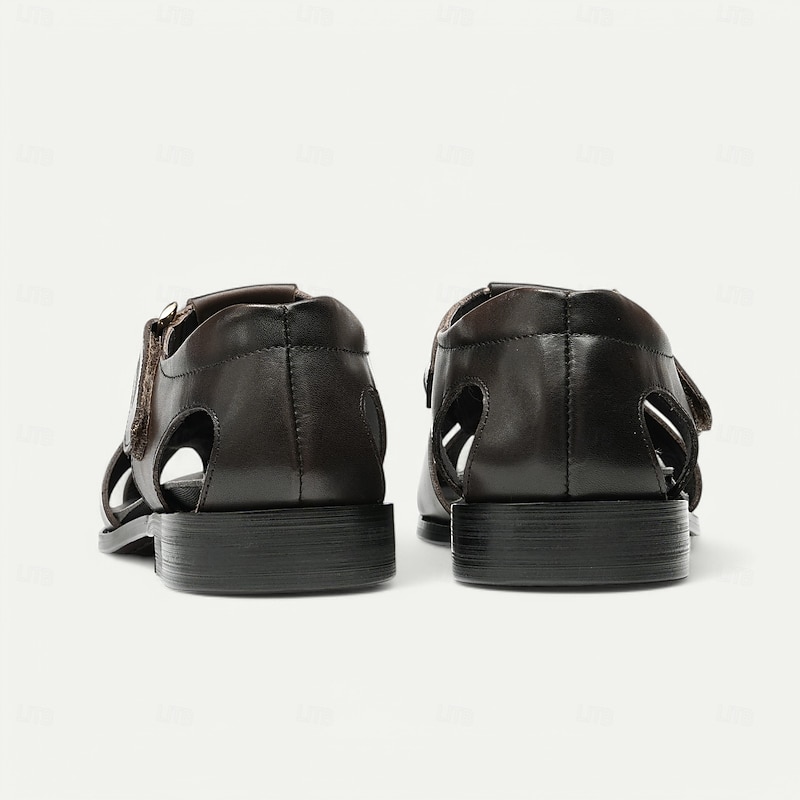 Luxury Men's Brown Leather Fisherman Sandals - Elegant Dress Footwear with Woven Straps 17