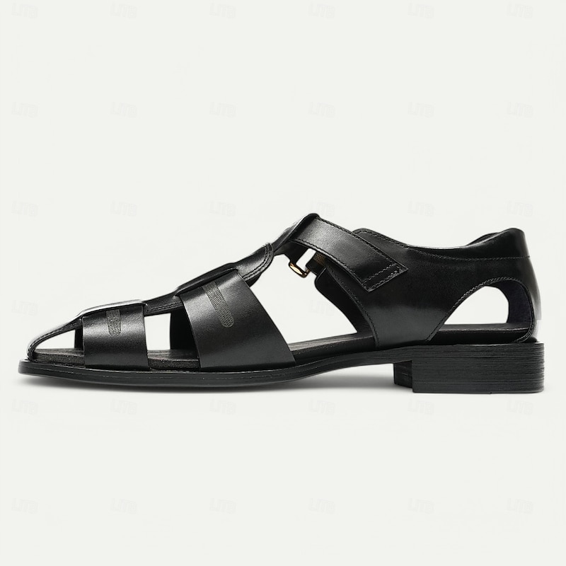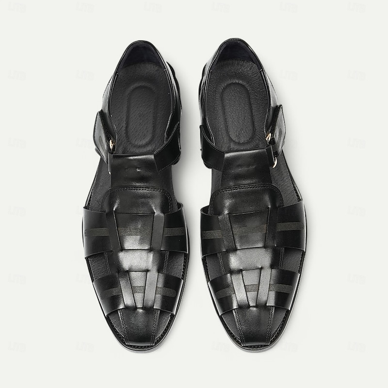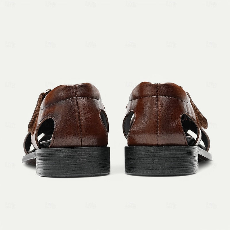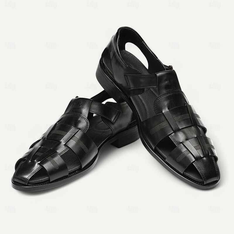 Luxury Men's Brown Leather Fisherman Sandals - Elegant Dress Footwear with Woven Straps 20