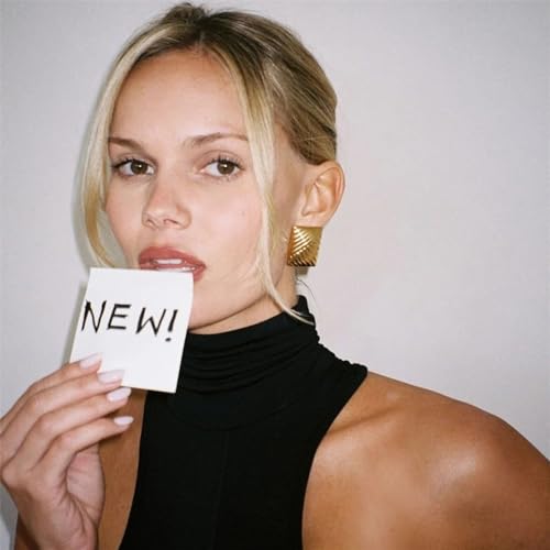 HOT ! Dainty Chunky Textured Rectangle18K Gold Plated Statement Big Stud Earrings for Women Vintage Trendy Stainless Steel Hypoallergenic Geometric Stripe Unique Design Studs Fashion Jewelry Gift