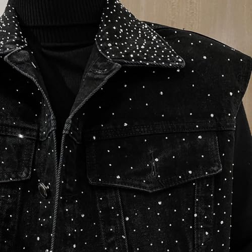 Mens Denim Vests Sleeveless Party Rhinestones Button Down Jean Vest Jackets 6