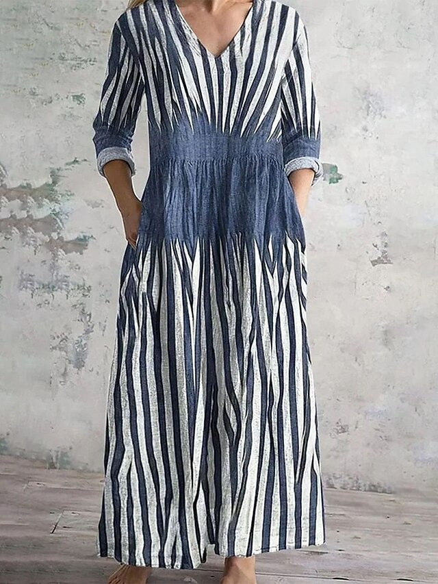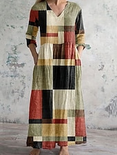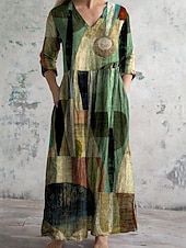More information about Women's Midi Dress Shift Dress Vacation Casual Daily Loose Fit Floral Long Sleeve V Neck Yellow Blue Brown Green Spring Fall