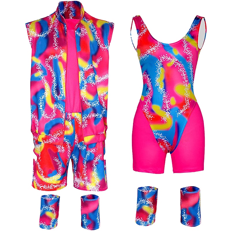 Couples Movie Rollerblade Outfits Doll Suits Jumpsuit Hot Pink Men's Women's Couple's Cosplay Costume Halloween Carnival Masquerade 5