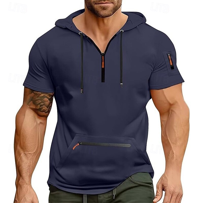 More information about Men's Hoodie Quarter Zip Hoodie Black Navy Blue Blue Khaki Light Grey Hooded Plain Pocket Quarter Zip Sports & Outdoor Daily Holiday Polyester Streetwear Basic Casual Summer Clothing Apparel Hoodies