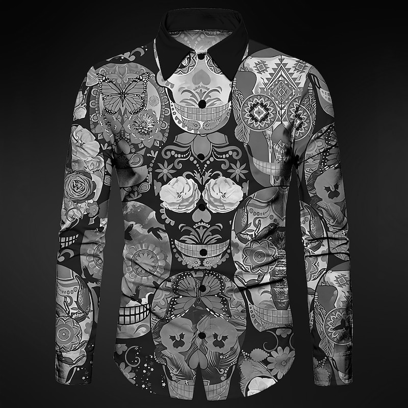 More information about Men's Skull Geometric Pattern Shirt Button Up Shirt Long Sleeve Abstract Gothic Carnival Daily Wear Going out Fall & Winter Turndown Print Button-Down Red Blue Purple Green Light Grey