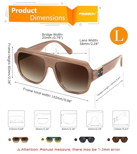 • [UV400 Protection Sunglasses] FEISEDY sunglasses provide UV400 protection against harmful UVA / UVB rays. Oversized sunglasses make view clear and natural, making the scenery look soft and not dazzling.