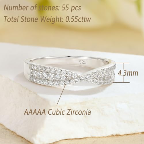 Wuziwen Infinity Wedding Bands for Women Curved Eternity Rings for Her Anniversary Promise Ring 925 Sterling Silver Cubic Zirconia 4