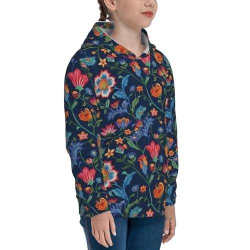 Vintage Embroidery Flowers Kid Hoodies Boys Sweatshirts Girls Pullover with Pocket 1