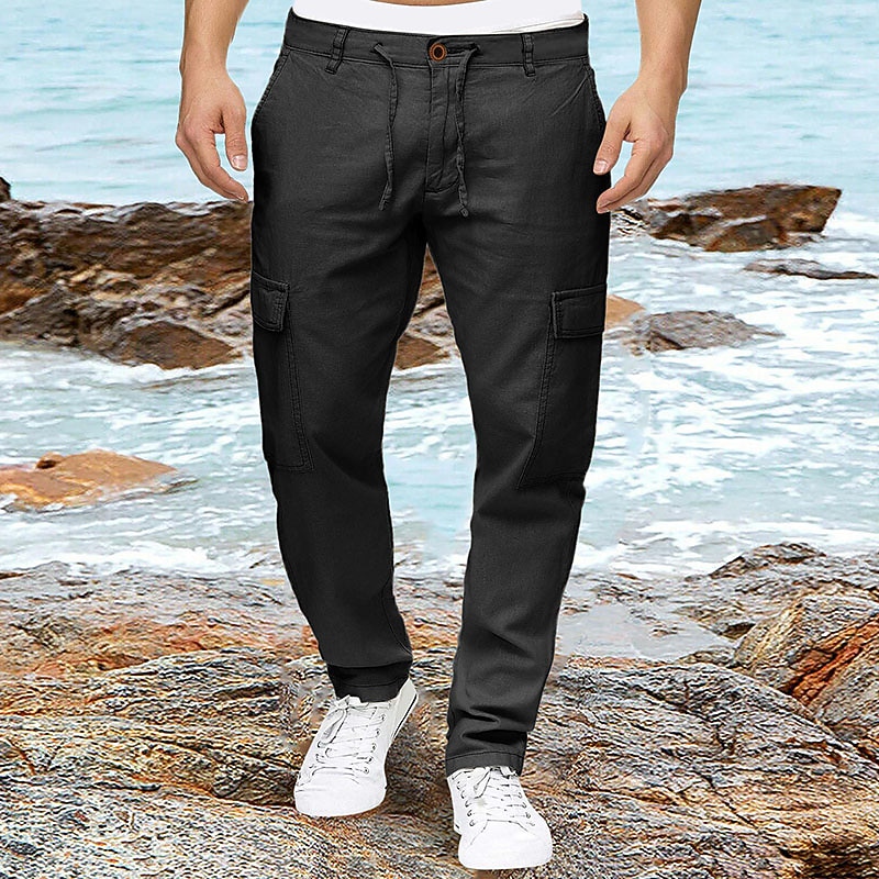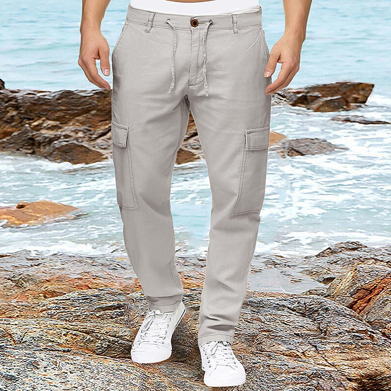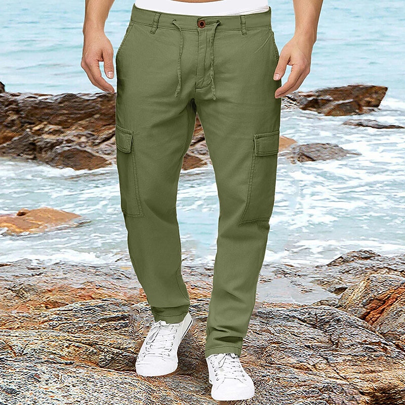 More information about Men's Linen Pants Trousers Summer Pants Multi Pocket Plain Comfort Breathable Outdoor Daily Going out Linen / Cotton Blend Fashion Streetwear Green Khaki