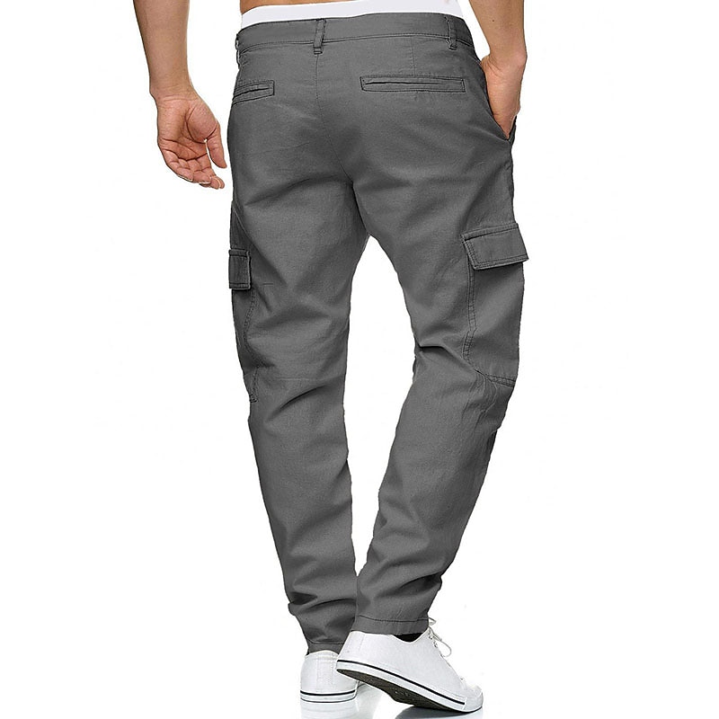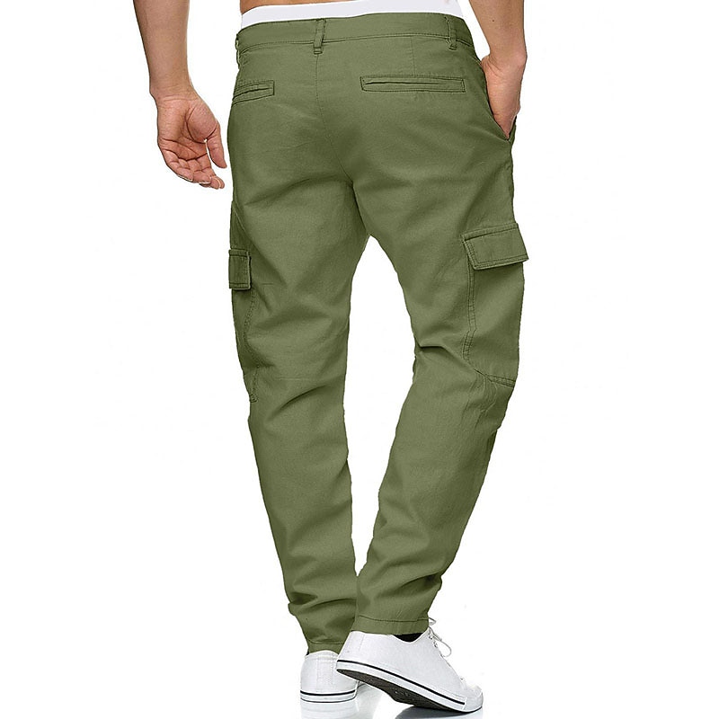 HOT ! Men's Linen Pants Trousers Summer Pants Multi Pocket Plain Comfort Breathable Outdoor Daily Going out Linen / Cotton Blend Fashion Streetwear Green Khaki