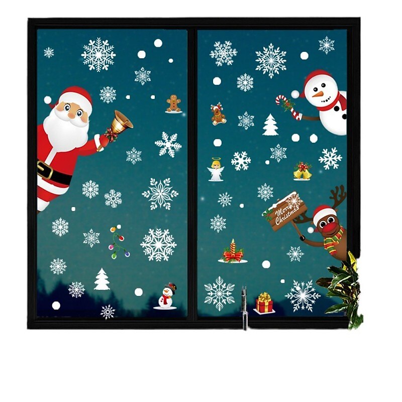 HOT ! Christmas Stickers Santa Claus Snowman Glass Stickers Window Decoration Snowflake Elk Window Stickers Double-Sided Effect Decoration