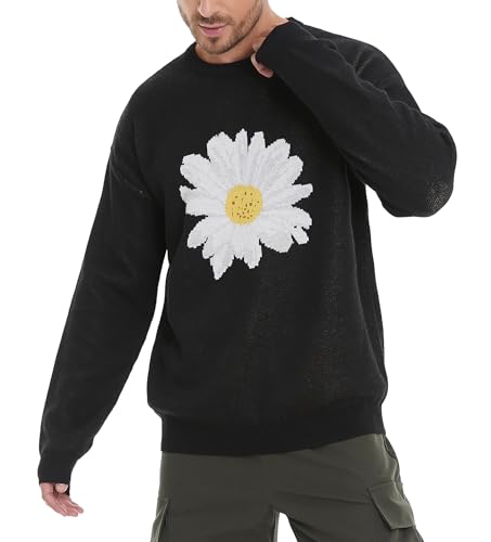Joe Wenko Couples Matching Floral Sweater Crew Neck Pullover Sweaters Long Sleeve Casual Loose Knit Top 4