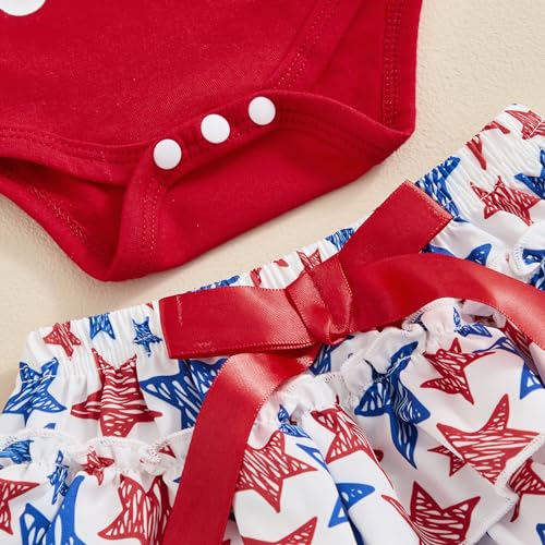 4th of July Baby Girl Outfits First Independence Day Fly Sleeve Romper Stars Shorts My 1st Fourth of July Outfit 3