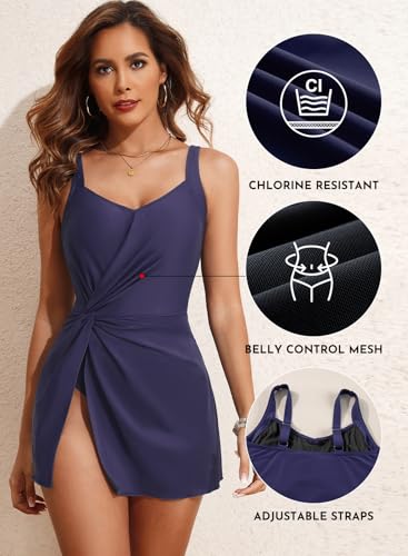 Aleumdr One Piece Swimsuit Women Swim Dress Tummy Control Skirted Bathing Suit for Women Swimwear 4