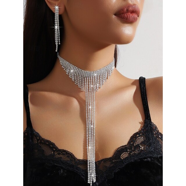$11.99 - Women's Sparkling Rhinestone Jewelry Set - Silver Choker Necklace and Long Tassel Earrings, Glamorous Statement Accessories for Evening Dance and Cocktail Parties 2025. Shop for cheap Women's Necklace online? Buy at lightinthebox.com on sale today!