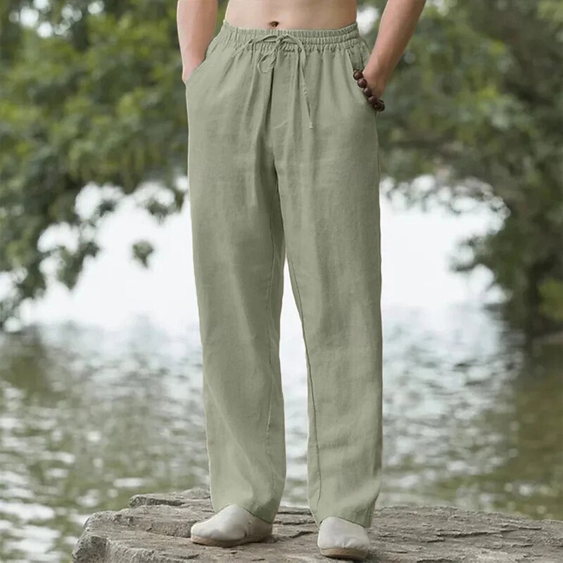 Men's Linen Pants Trousers Summer Pants Baggy Pants Elastic Waist Drawstring Straight Leg Plain Comfort Breathable Full Length Outdoor Casual Daily Fashion Classic Style Black White Inelastic 11
