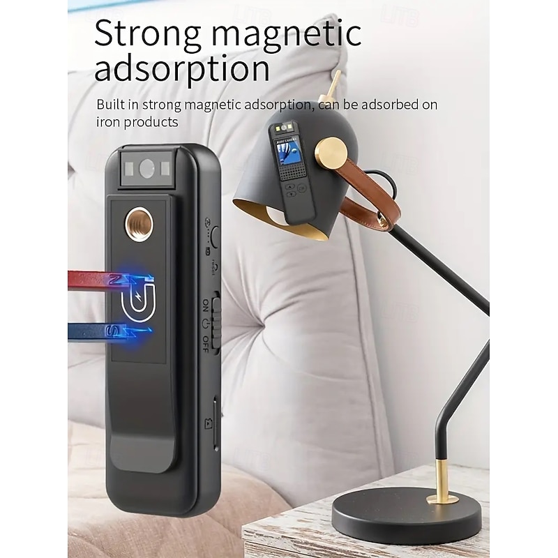 High-definition 1080P portable recorder with photo and video recording equipped with a fill light 0.9-inch IPS screen flip lens back clip magnetic camera and voice recorder with a 32GB card. 8