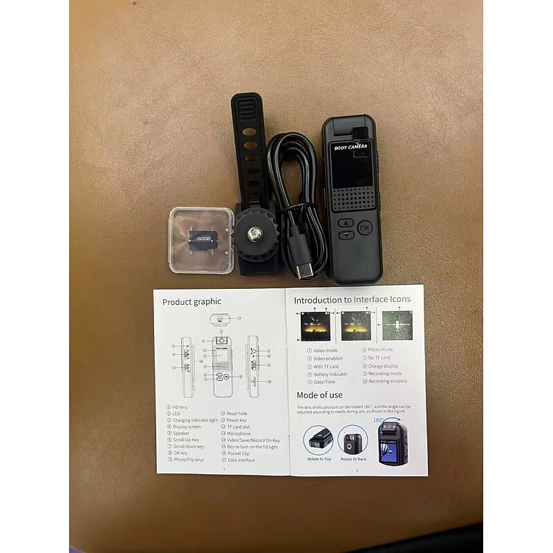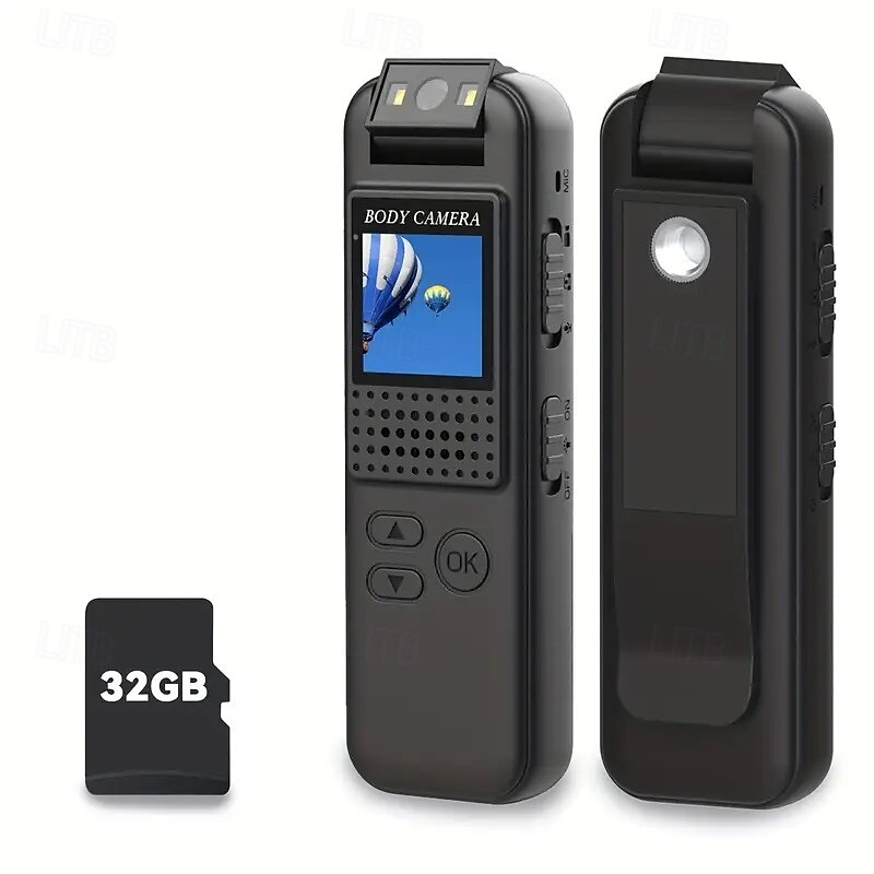High-definition 1080P portable recorder with photo and video recording equipped with a fill light 0.9-inch IPS screen flip lens back clip magnetic camera and voice recorder with a 32GB card. 15