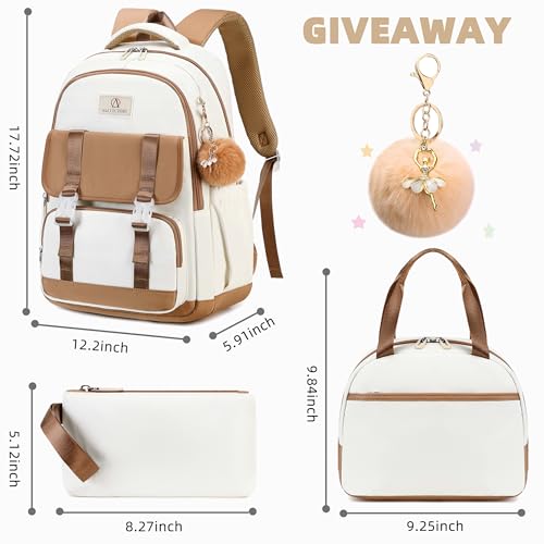 AO ALI VICTORY School Backpack for Girls Women 15.6 Inch Laptop Backpacks College Bookbag Cute Kids Elementary Middle High School Bag with Lunch Box Set for Teens Students Travel Daypack, Brown Set 3