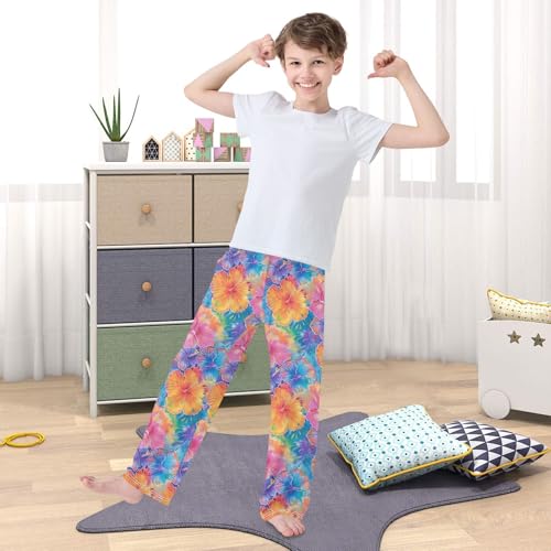 ALAZA Colorful Hibiscus Flower Blossom Pajama Lounge Pants Long Sleep Pajama Bottoms with Pockets 7