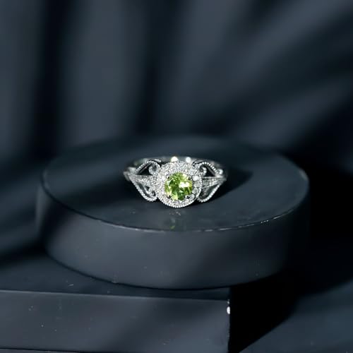Certified Peridot Art Deco Engagement Ring, AAA Quality, Real Peridot Diamond Halo Ring (Gift for Women) 6