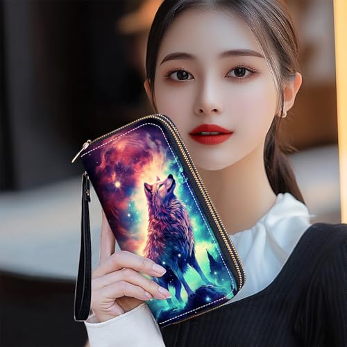 More information about Wolf Print Women Large Capacity PU Leather Double Zipper Wallet, Multifunctional Clutch Purse for Cash/Card/Coin/Smart Phone
