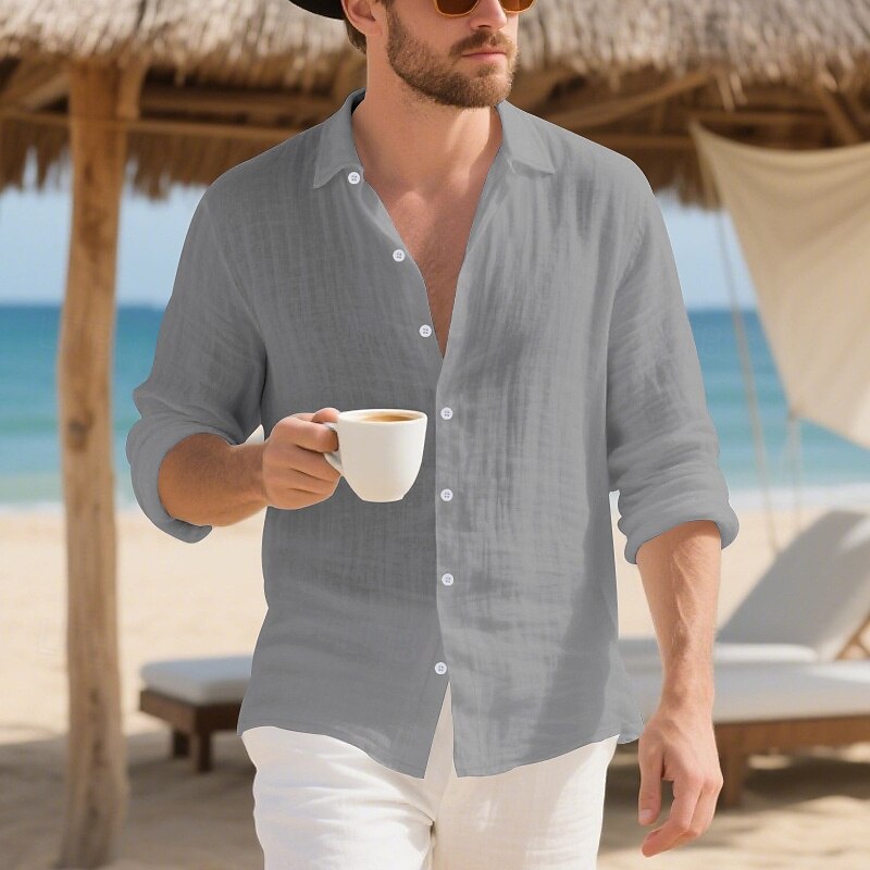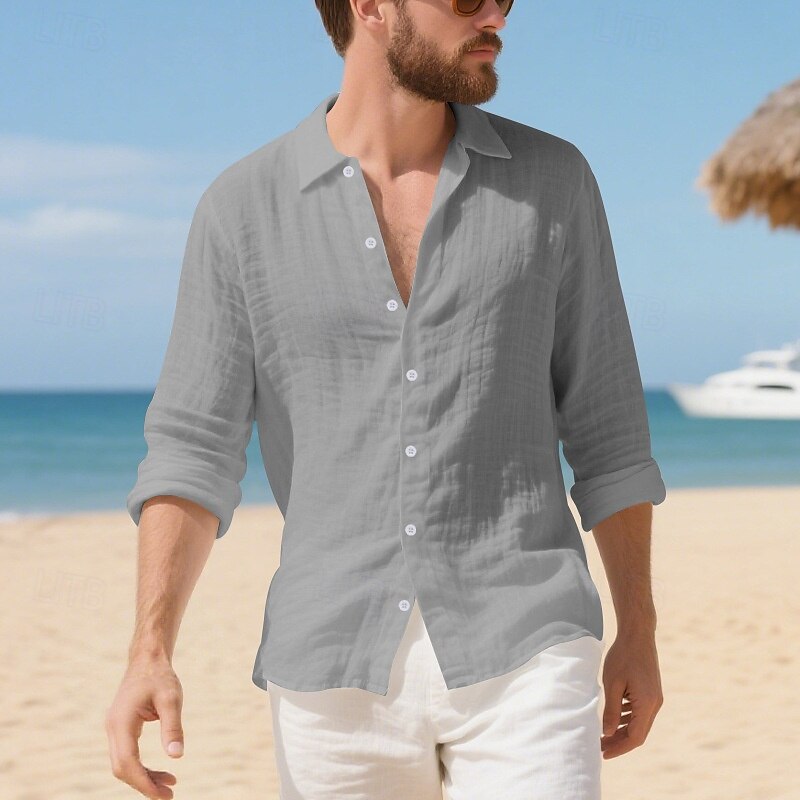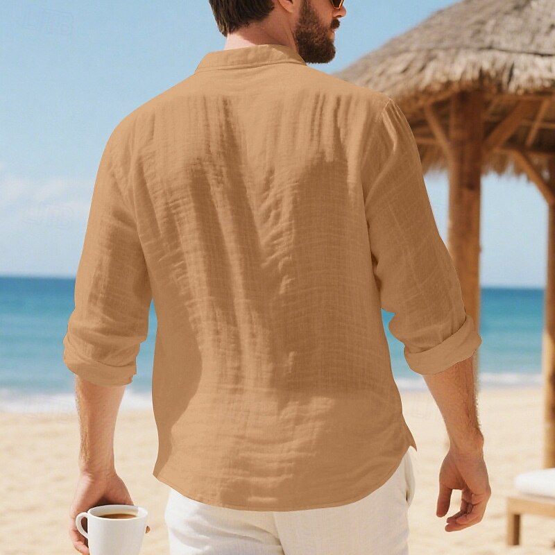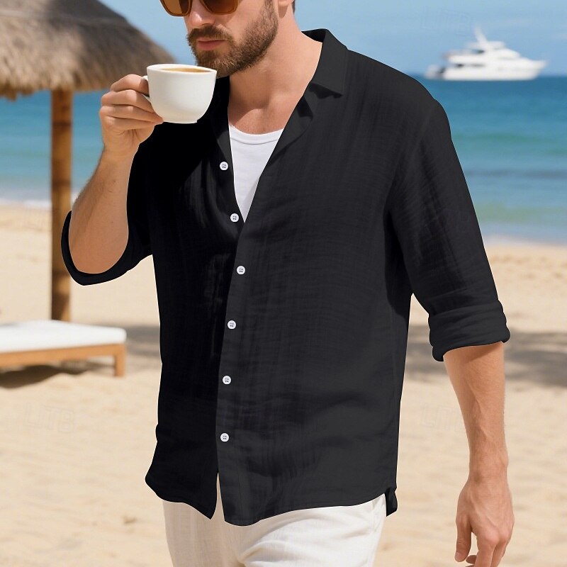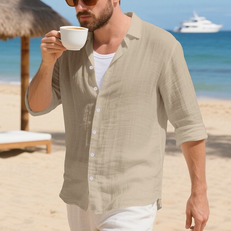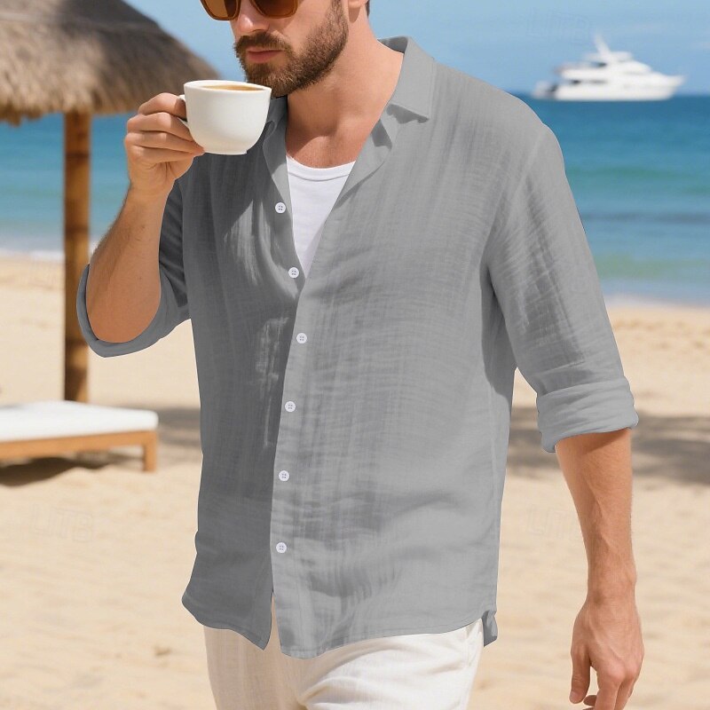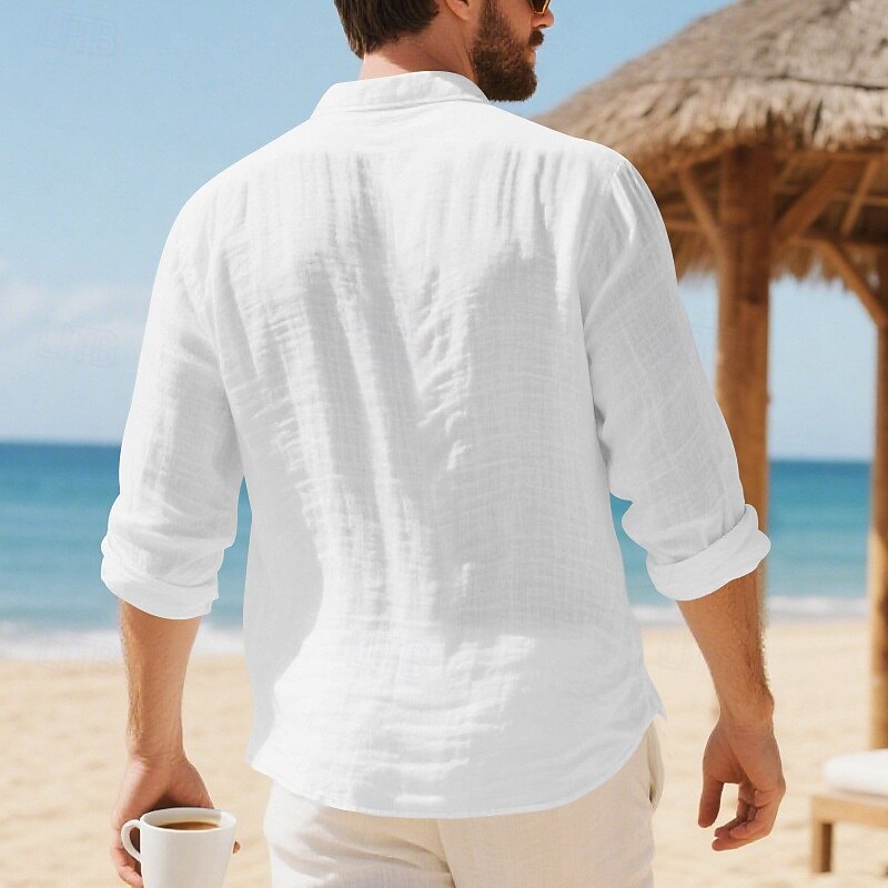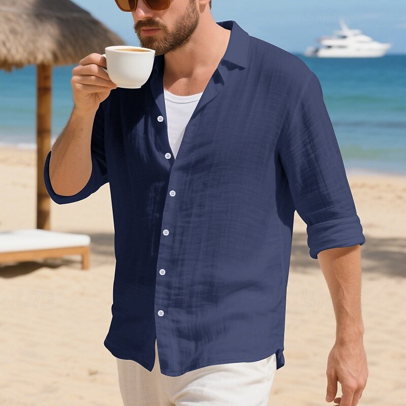 Highlights Key Selling Points: - Made with high-quality linen fabric, perfect for spring and fall seasons. - Features long sleeves and a casual style, ideal for men. - Great for vacation wear, with a comfortable lapel neckline. - A versatile linen shirt that can be dressed up or down for any occasion.