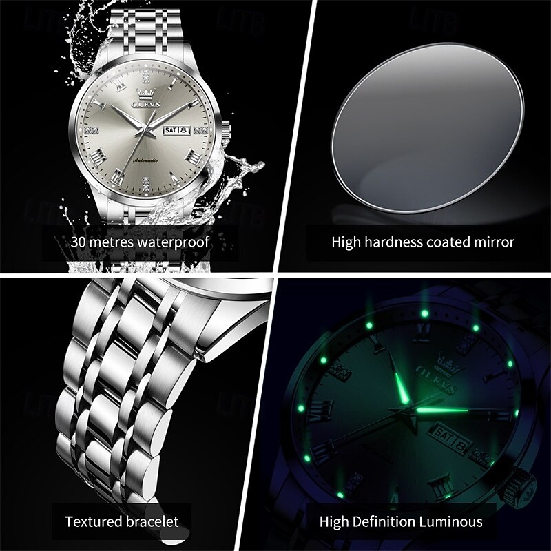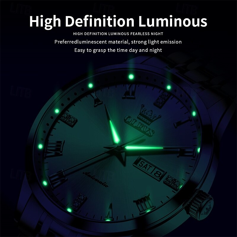 More information about The New Olevs Brand Men'S Business Fully Automatic Mechanical Watch Is Waterproof Luminous Calendar And Day Display Fashionable And Trendy Men'S Watch Casual Sports Wristwatch