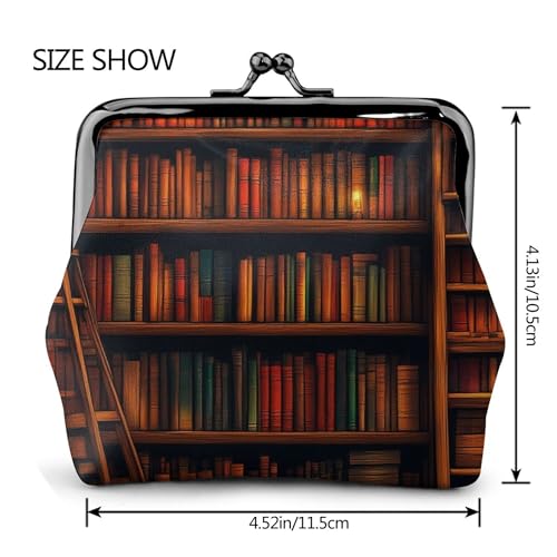 More information about Coin Purse Bag Pouch Kiss-Lock Change Purse Small Wallets Coin Pouch For Women (Library Bookshelf Vintage (1))